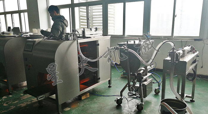 星火廠房-單工位自立袋醬料包裝機(jī)與其他設(shè)備搭配組合展示: