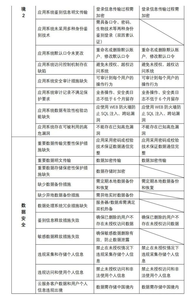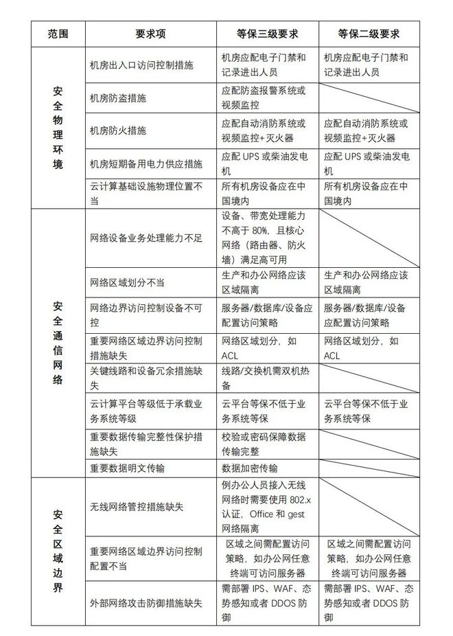 本文參考了《T/ISEAA 001-2020 網(wǎng)絡(luò)安全等級保護測評高風(fēng)險判定指引》,整理出了等保三級、二級所需產(chǎn)品和要求。研發(fā)或運維人員通過該表可直觀了解自己的系統(tǒng)與等保要求存在的差距,并做出相應(yīng)整改。